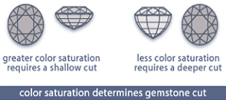 In a gemstone with more saturated colour, the best cut may be more shallow than average, permitting more light to penetrate the gemstone, while in a less saturated gem, the colour may benefit from a deeper cut.