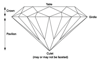 Buyer's Tip Like Diamonds, fine quality colour gems usually have a table, crown, girdle, pavilion, and culet. Iridescent opals are one exception, and most often have a rounded cabochon cut.