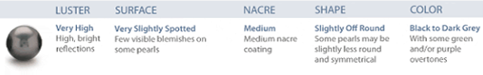 Tahitian cultured Pearls offer a dramatic touch. The natural black color of these Pearls comes from the color of the oyster's black lips. These Pearls are traditionally called "black," but their color can range from a metallic silver, to the color of graphite. And within this range of colors they can have bluish, purplish, or greenish overtones.